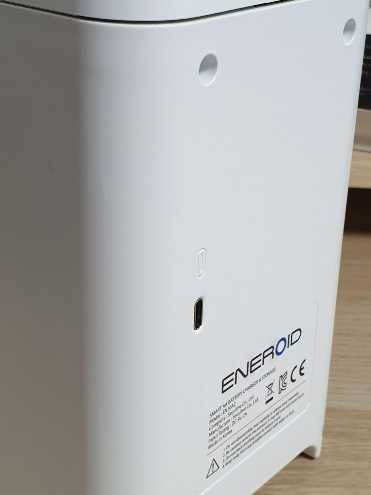 에너로이드의 뚜껑을 열고 다 쓴 1회용 건전지를 대충 넣으면, 알아서 충전 안되는놈은 걸러지고 되는놈은 충전된 후 보관함에 빠진다. 원리는 모르겠지만 극성을 맞춰넣지 않아도 알아서 어디가 +고 어디가 -인지 인식한 후 충전을 해준단다. 사소하지만 이런거 좋다.