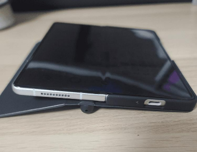 그리고 힌지쪽에 펜 수납이 있기 때문에 폰을 펼치고 바닥에 놓으면 자연스럽게 시소처럼 폰 한쪽이 들리게 되어버린다. 그나마 측면 전체가 들리기에 카툭튀보단 안정(?)적이다. 그리고 구조상 잘 보면 펜 수납 공간이 기기에서 살짝 왼쪽에 있기 때문에 폰이 자연스럽게 오른쪽으로 기울어지고, 그래서 오른손잡이들은 적응을 한다면 쓸만 할 것이다. (그럼 왼손잡이는..? 돌려쓰면됨)