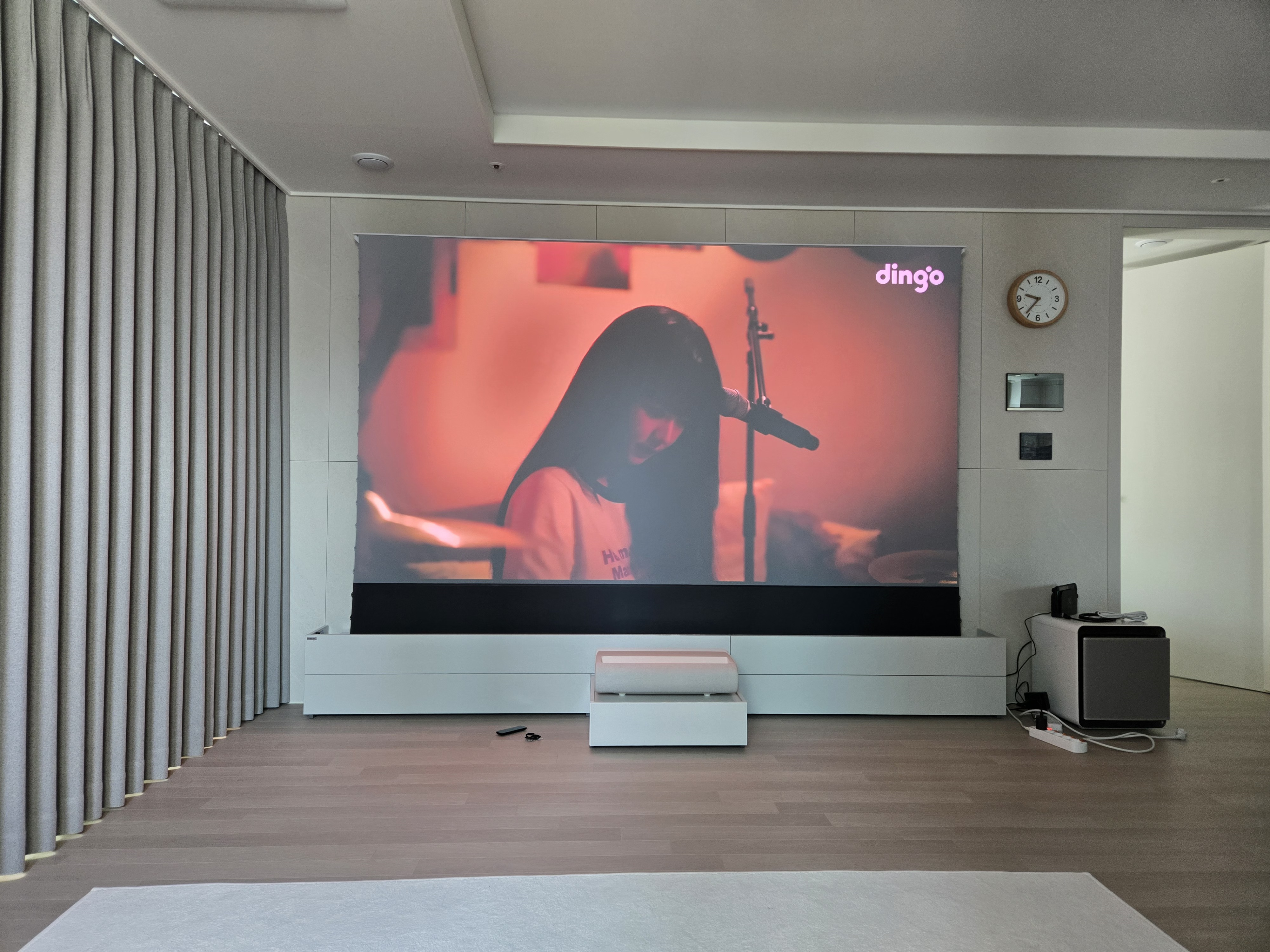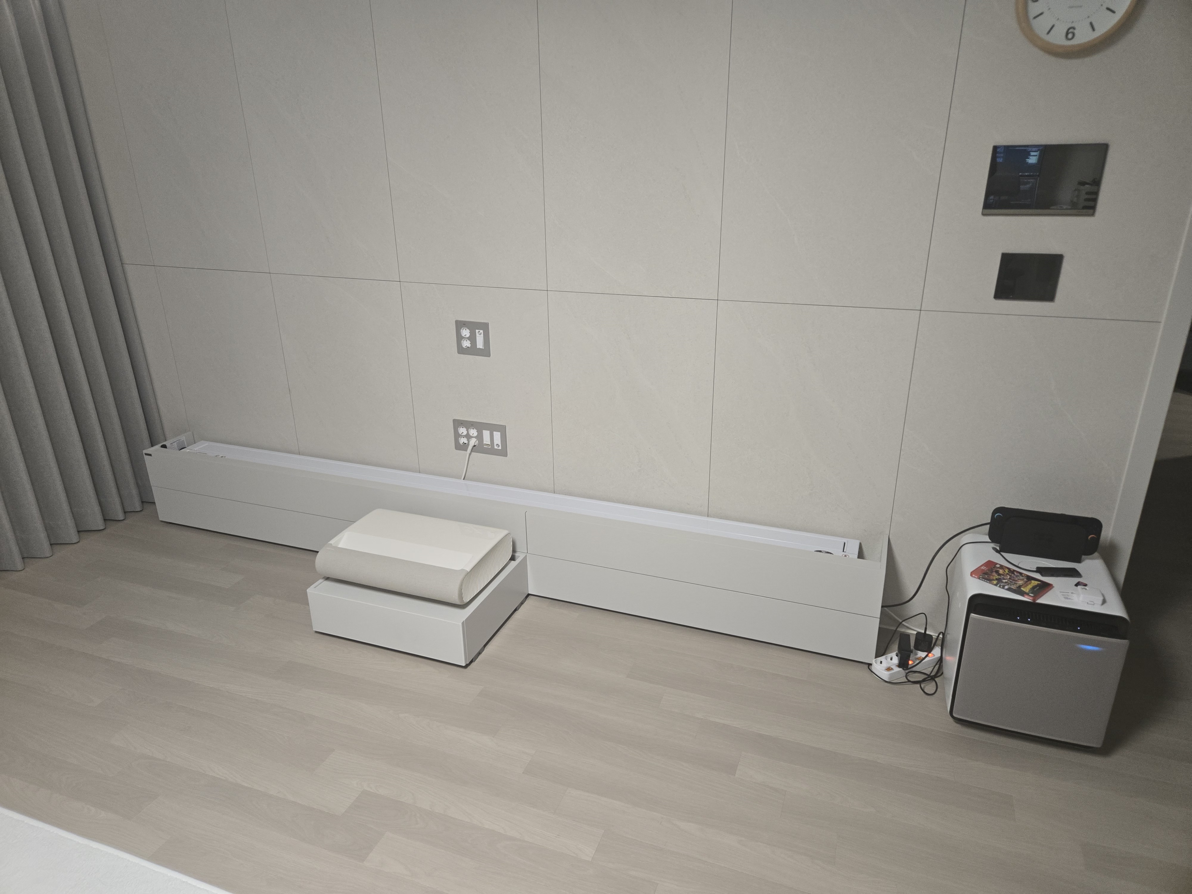 - 롤러블 스크린이기 때문에 추가로 벽에 초슬림TV나 액자를 걸어놓을 수 있다. 나는 가난해서 여기까지는 아직 안했다.