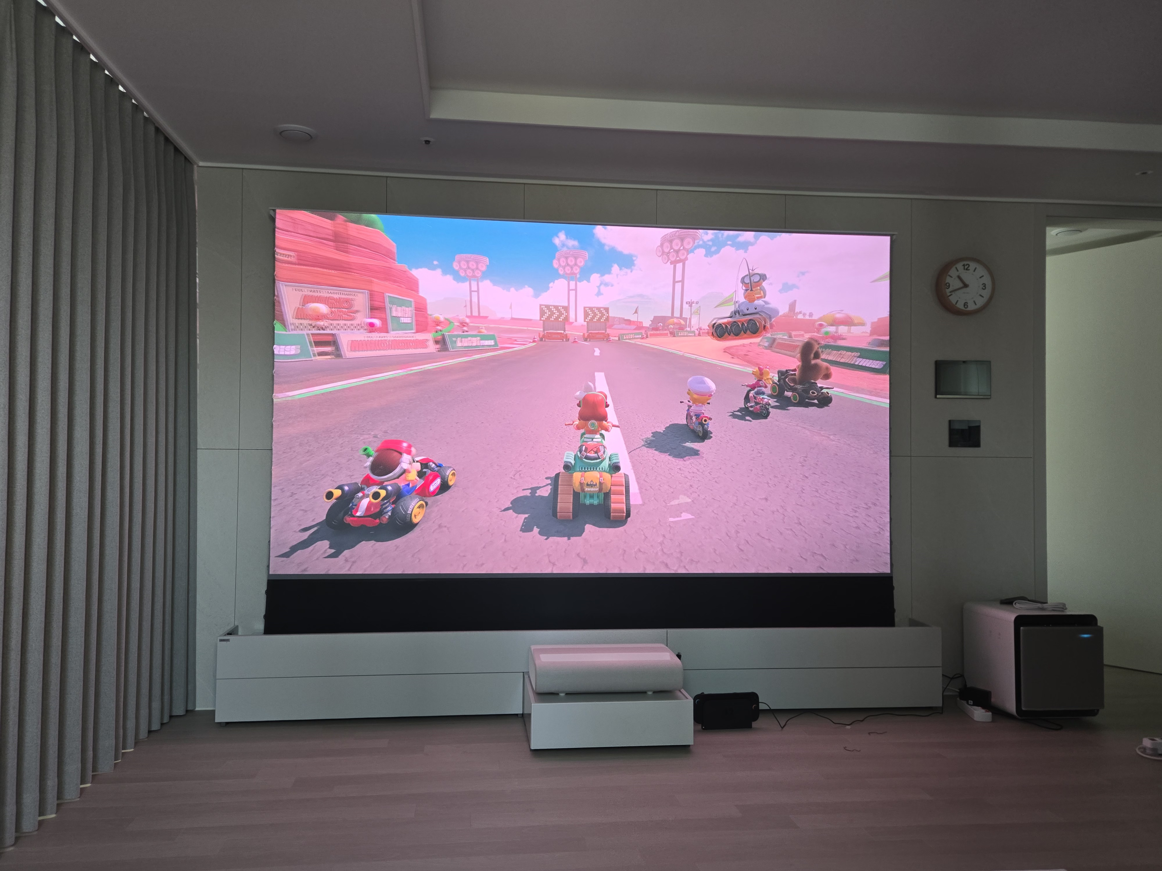 - 졸라큼. 다들 TV는 85인치 이상을 하라고 하던데, 이건 120인치임. 벽을 꽉 채우는 그 느낌은 비교할 수 없음.